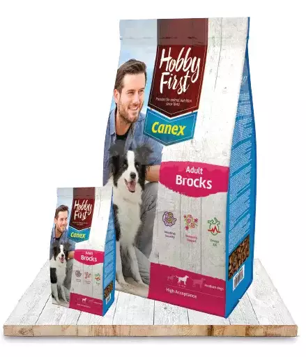 HobbyFirst Canex Adult Brocks is een complete en uitgebalanceerde voeding voor volwassen honden van alle rassen, met een gemiddelde energiebehoefte en normaal gewicht.